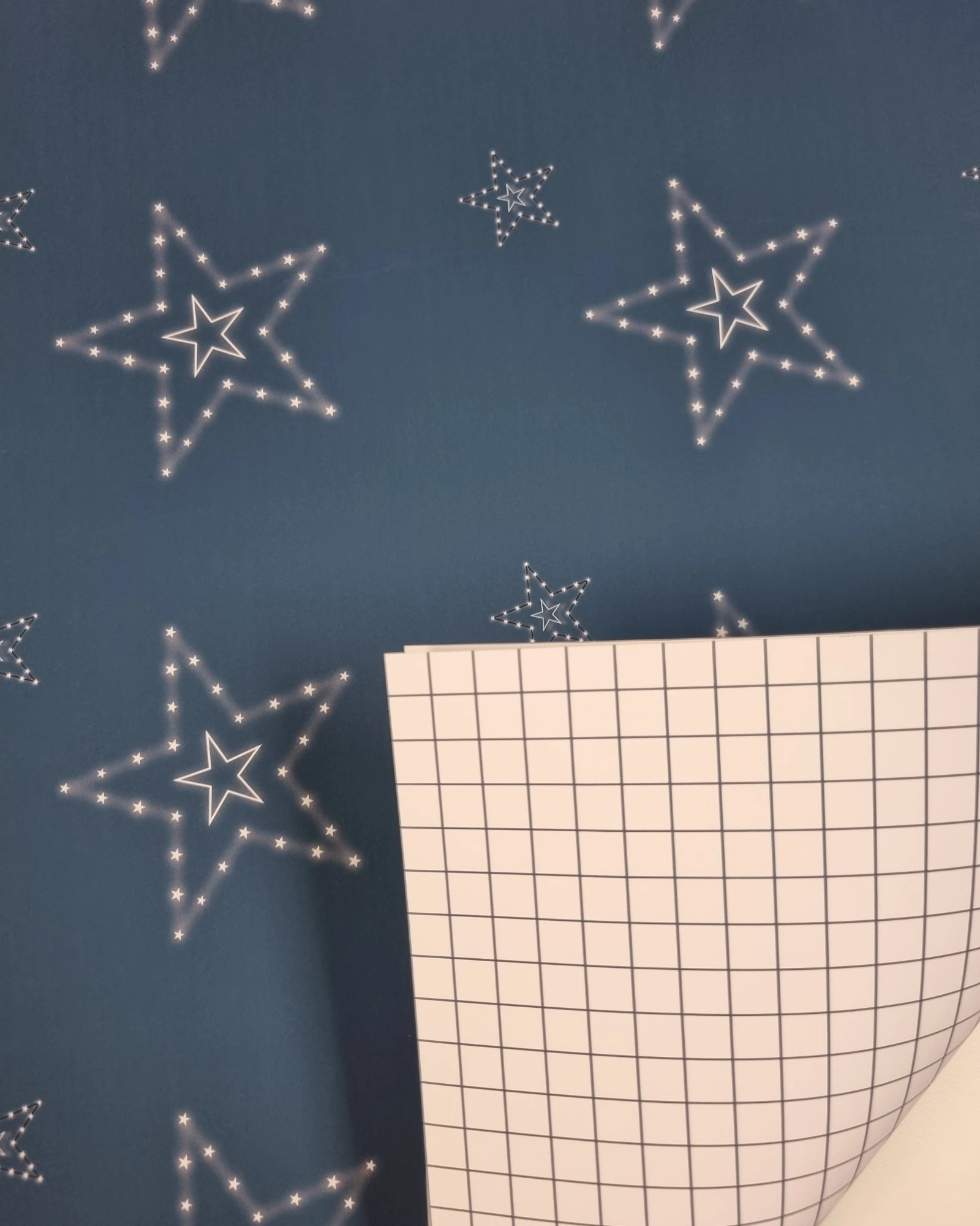 • Julblått papper med vita stjärnor – ett vintrigt och elegant motiv med stjärnor i två olika storlekar. Perfekt för en stilren och mysig känsla.